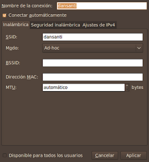 ahí dentro añadimos una nueva conexión en modo ad-hoc, en el caso nuestro para una red por wifi, o añadir una conexión cableada, para el otro tipo de redes por cable.